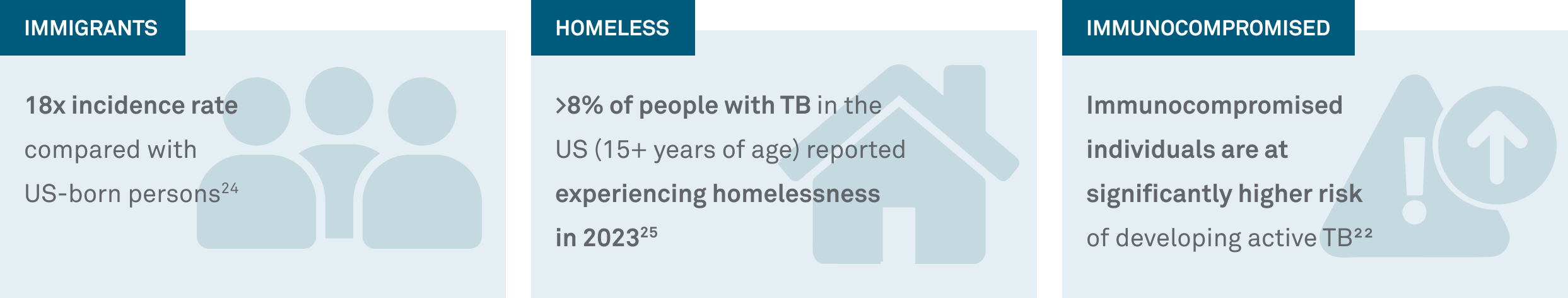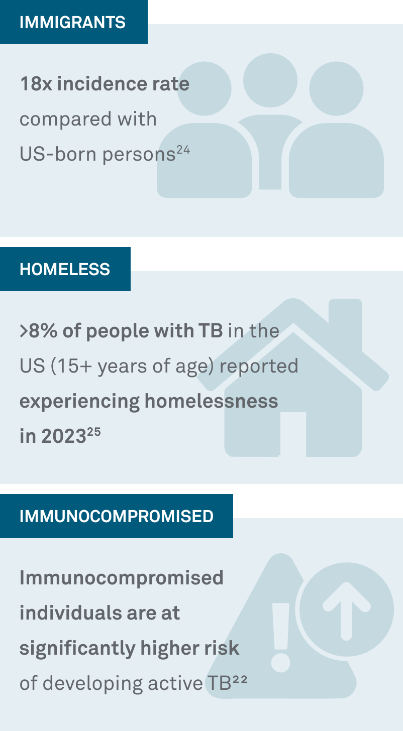 It’s 9x more likely for people with certain cancers to develop active TB compared to those without cancer28 |
