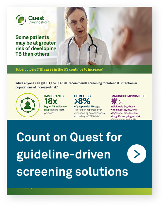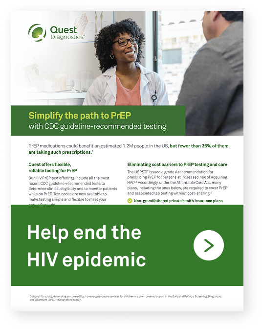 With assays for all stages of the HIV patient journey, Quest can help you support your patients throughout their care continuum, from prevention and screening to monitoring treatments.